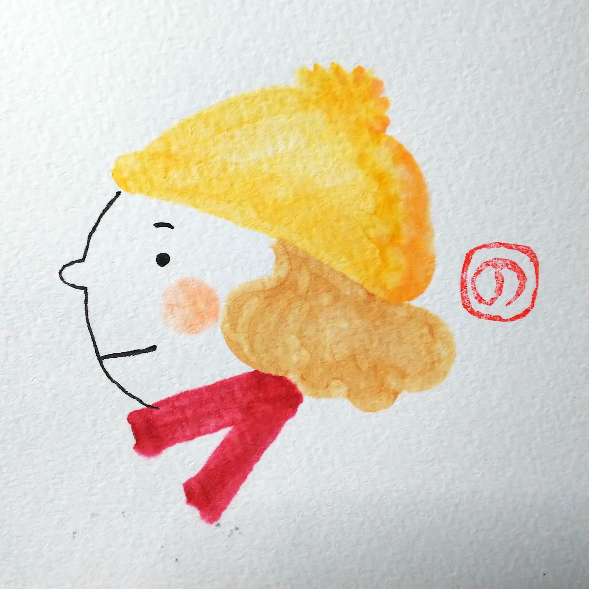 昨日から今日にかけて、10枚ほど筆まめ小僧の絵を描かなくてはならなくて、もう今日はこれで許してください、というやつ。 もうマフラーの絵も終わりかもなぁ。 #マフラー #ニットキャップ #アナログイラスト #コピックイラスト #ねむい