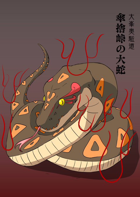 43 166 傘捨峠の大蛇 役小角が大峰山で修行をしていた時、行仙の宿付近の傘捨峠に、山越をする人々に悪さをする大蛇がいると聞き現地に赴いた。すると、巨大な大蛇と遭遇。役行者が鉄下駄で踏みつけ、錫杖で跳ね飛ばした所、尾は奈良の猿沢池に、頭は熊野の有馬の池に、胴は下北山の明神池に落ちたと言う。 22/04/04 15:47