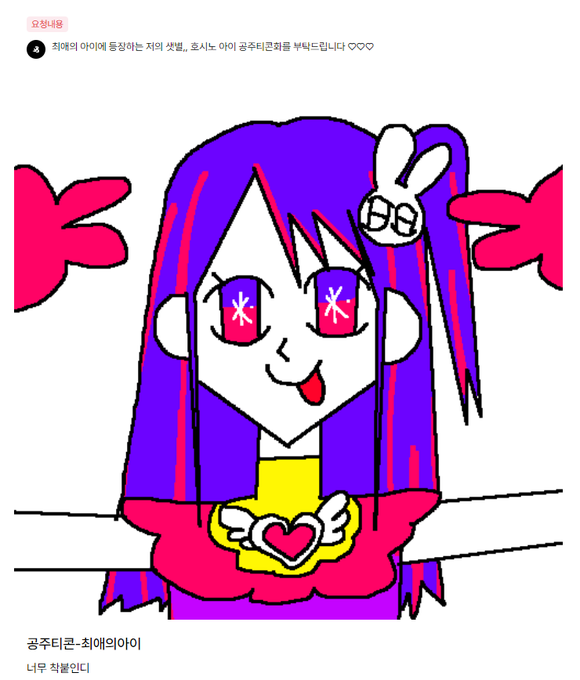 리퀘박스를 열었습니다! 여러분의 최애를 공주티콘화 시켜드립니다 :) 많은 관심 부탁 :) 합니다 :) (놀라울정도로그누구도관심을주지안앗다) spinspin.net/rude_147