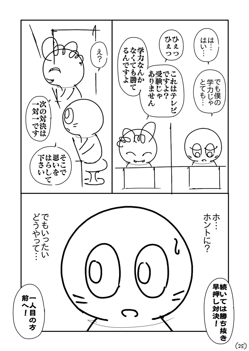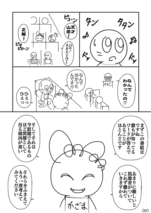 「バラエキ!~クイズ番組で東大生に勝つ方程式~」23 🐰「これ このページに問題文ないせいで 解答もボケも伝わらないわね…」 🐻「クイズは⬆の22ページにあるので そちらから読むことを推奨します」 #漫画 #創作 #漫画が読めるハッシュタグ