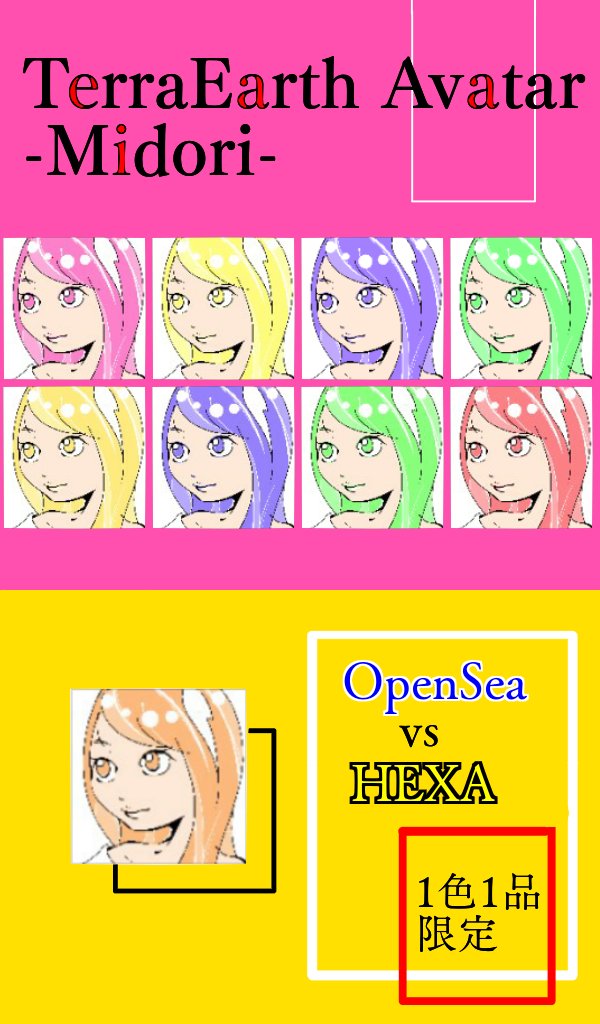 🐻「皆さんgmです!🌞 昨夜は涼しかったですね🎐✨ 今日の #NFT宣伝枠 ただ今【OpenSea🏖vs⭐HEXA】と題してどっちが売れるか対戦中! ブツは『テラアース アバター👰-Midori-』 🏖poly 0.005 ➡️opensea.io/Ruihanada_GORI… ⭐1000円~ ➡️nft.hexanft.com/users/W5lo0Y51… 🐰「ぜひ覗いてみてね🤗✨」 #nftart