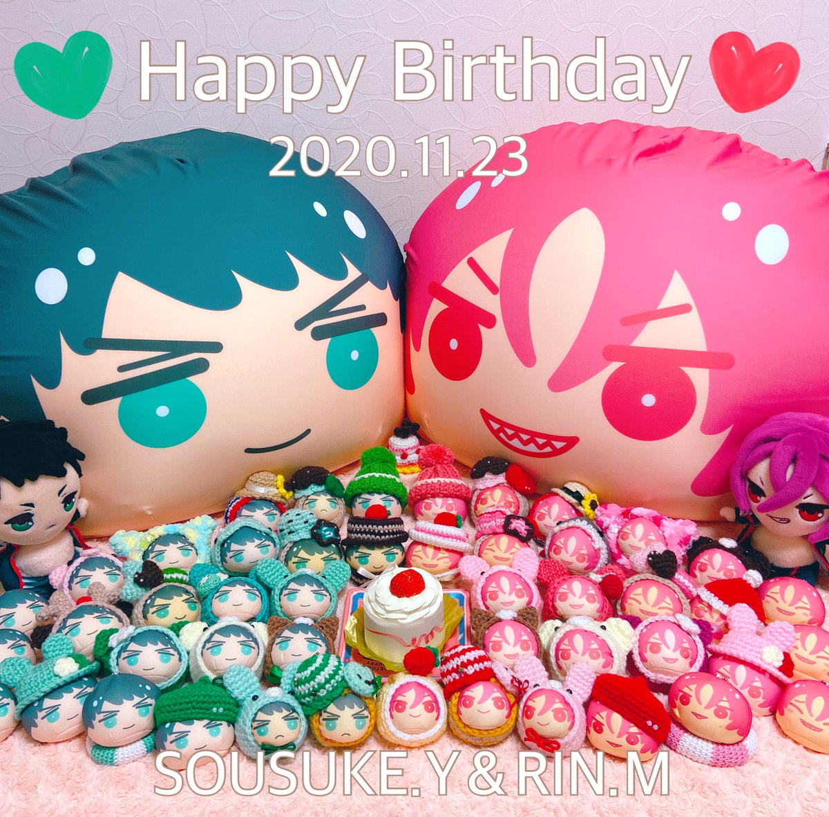 \ 2019.11.23 / 💚❤️宗介と凛の真ん中バースデー💚❤️ 言わなくても分かる関係💓 今年はちゃんとお写真撮れたよ☺️💕 まずはにとたんとおまんじゅうでお祝い🥂💚❤️ #宗凛真ん中birthday