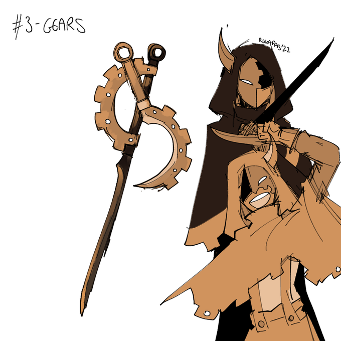 #swordtember2022 "Mismatched blades that were born from the two halves of the same gear; always fated to find their way back to each other once more. Legend has it that before the gear that made them was split in two, it was a vital piece in a grand and terrible machine."