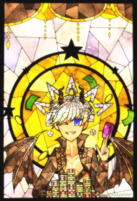 Glass stained Lucifer for #ObeyMAX day 6🌟 His nail color is the red but the pride symbol is blue so well...TT v TT #ObeyMeSeven #Obeyme #obeymefanart #Obeymejp #Obeymelucifer