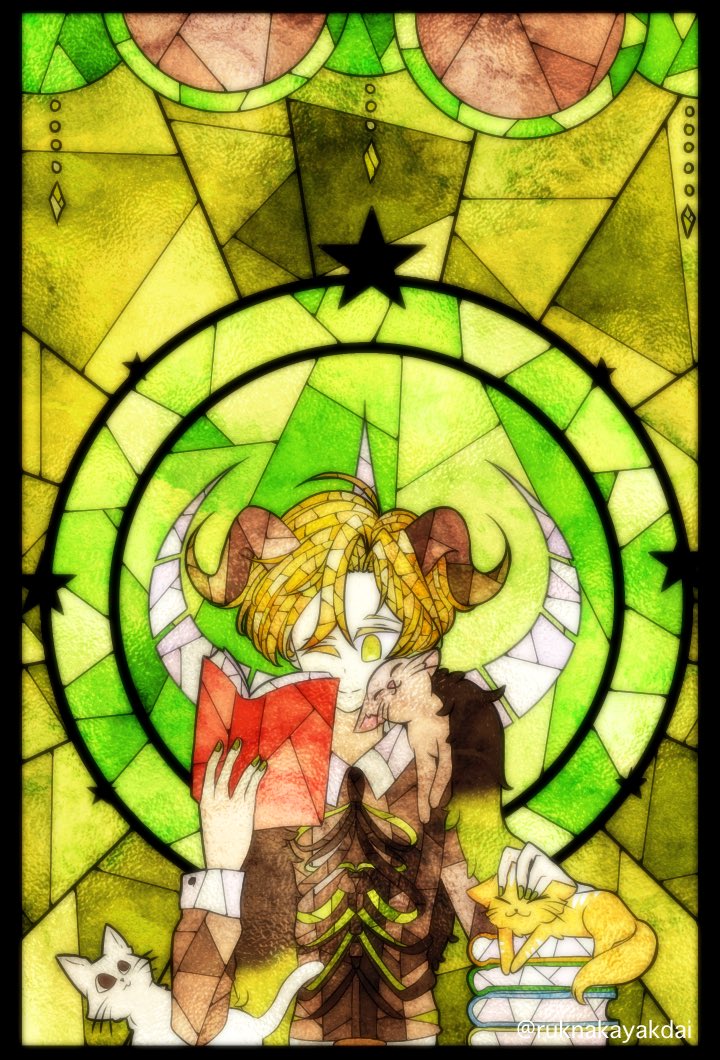 Glass stained Solomon🌟 I’ve got a little bit problem with picking the background colors srry😭 and his cape and shirt is the same color i.. i tried TT v TT;; #obeyme #obeymefanart #obeymejp #obeymesolomon