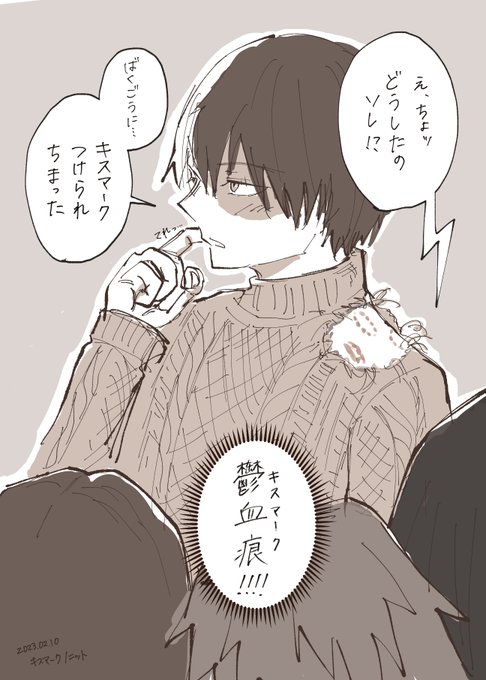 15 85 #轟爆版深夜のワンドロ一本勝負 お題:キスマーク/ニット ニットがなかったら血痕だったね! 鬱って字書くの難しかった 23/02/11 00:06