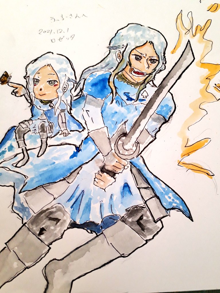 @UKIYOE_TYPEMOON #うっちーさんちの子 描かせて頂きました。どう考えても…ゆるキャラの位置間違った笑 のほほんとした雰囲気の子が戦ったら格好いいかなと思って戦って貰いました!リクありがとうございました!✨