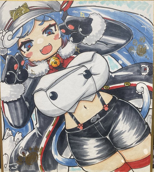 ピエレッタにゃん色紙できた!🤪 口元にうっすいホクロが…🫠💦