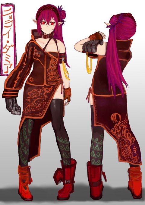 やっとキャラデザできたー♪ 最初、お嬢様だったのが盗賊のエルフになって最終的にこのデザインに落ち着いた #オリキャラ #立ち絵 #イラスト好きな人と繋がりたい #絵描きさんと繋がりたい