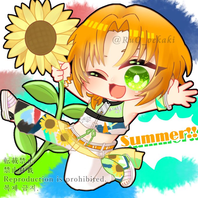 あんスタ/月永レオ(サンシャイン衣装) 🌴☀️夏みたいな表情だったんだ🍧🌴 #あんスタファンアート #あんスタFA #デフォルメ #ミニキャラ #私の絵柄が性癖に刺さる人に届いてほしい #Knights