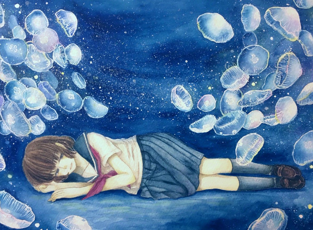 【作品解説】 「回転木馬症候群」 現実逃避としての空想、思考がぐるぐるして無限ループから抜け出せない様を描いてます。 構想自体は数年前からあって、やっとかたちにしました。箔貼るのが楽しかったです。ぷっくりしてます。あと思ってたよりかわいくできました。 #ZEROTEN2022 #art #イラスト twitter.com/rurimatsuri7…
