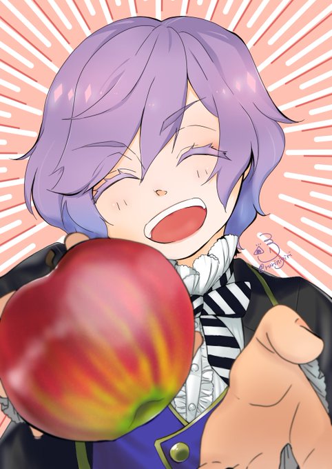 1 5 「ばっちゃが…あっ、お祖母様の作った林檎、とっても美味しいんだ。食べてみて!」 …と有無を言わさず丸かじりさせてくるワイルド系男子、エペル・フェルミエ #ツイステファンアート 20/12/05 22:10