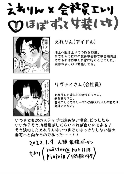 22 80 1/9無配 えれりん×会社員 | もより #pixiv pixiv.net/artworks/95526… #エレリのえれりん 22/01/14 23:48