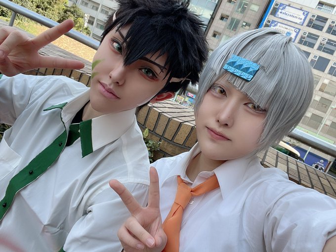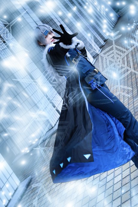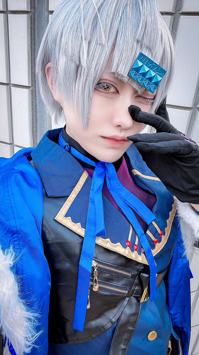 #コンパスエンジョイ部 ①アダム=ユーリエフ ❄️ ②カメラマンさんとお友達に手伝って貰いながら、コートのひらみを出して最高の1枚が撮れました…! クールだけど怖くない、優しさのある表情やメイクを意識しています🙌🏻 特徴的な髪型を再現するために、ウィッグにしっかり段をいれました( ¨̮ )
