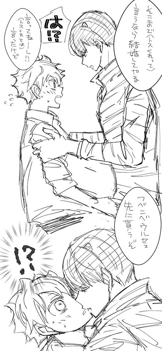 37 177 お題 返事 「これがお前の返事でいいんだな」 「そんなことは言ってねー」 #影日ワンドロ @kagehina_d_w 23/03/19 00:18