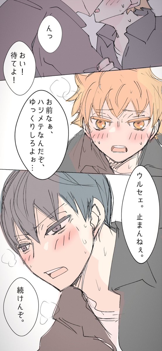 39 235 つんださん(@TsunTsun_Datsun )の「烏野の噂」の一場面を妄想全開で描かせていただきました。(UP許可ありがとうございます✨) 甘さともどかしさと、少しだけツンと来るスパイスを幸せに溶かしたような素敵なお話でした❤️ 22/09/29 17:17