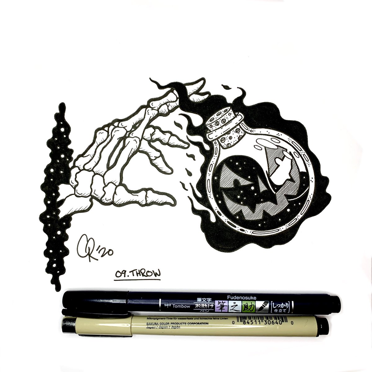 Inktober 07. Fan - tried to find a spooky twist for this one #Inktober #ink #inktober2021 #31NightsOfHalloween #illustration #inktober2021day7