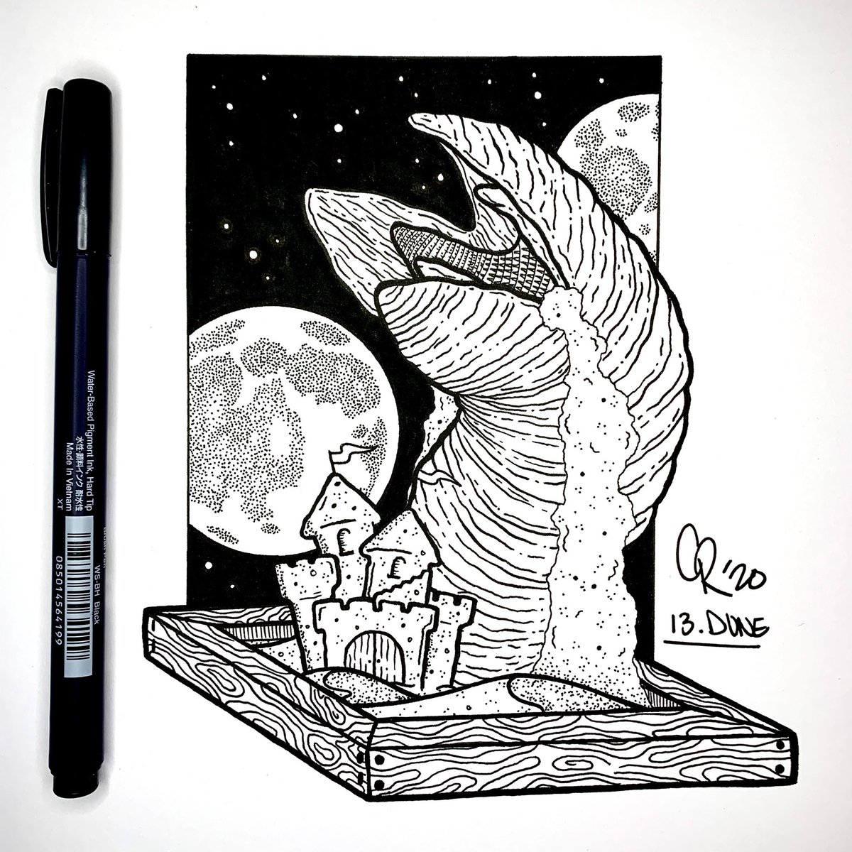 #Inktober Day 13. #dune I just read the first two Dune books, pretty bummed we have to wait another year for the movie #dunemovie #inktober2020