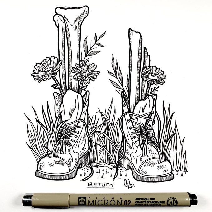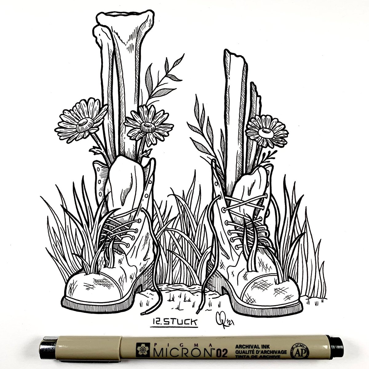 Inktober 12. Stuck - this was a fun as hell idea to work on #inktober2021 #Inktober #drawing #illustration #INK