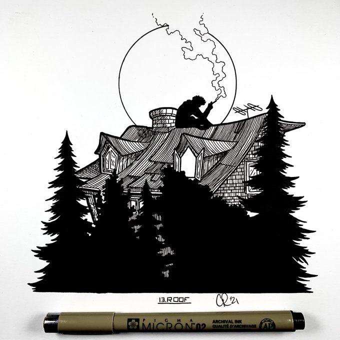 Inktober 13. Roof - finally getting into some sad #inktober vibes #inktober2021day13 #drawing #illustration