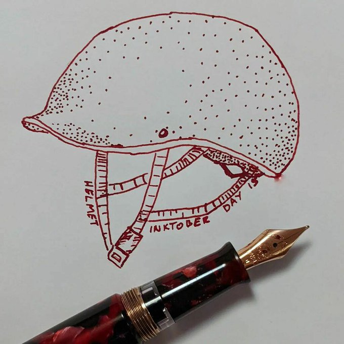 Inktober day 15: helmet. . #inktober #inktober2021 #ink #redink #purepenscadwaladr #pen #fountainpen #twsbidraco #drawing #bikehelmet instagr.am/p/CVGkPynoj5E/