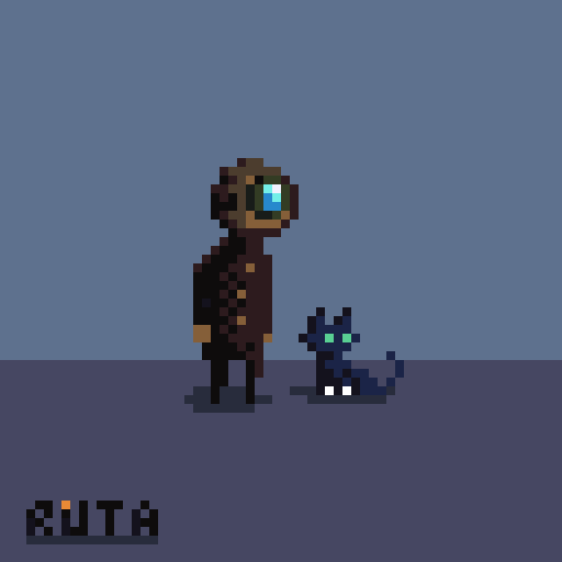 1 0 「ロボっぽい学生と猫」 #pixelart #ドット絵 22/12/24 17:09