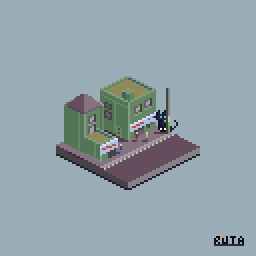 「アイソメトリックな店と猫」 #pixelart #ドット絵 #猫 #pixelartwork