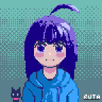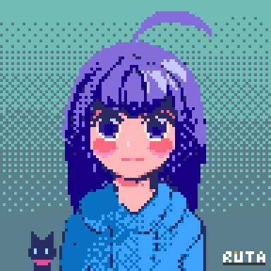 「紫髪の女の子と猫」dotpictで描いてみた😄 #pixelart #ドット絵 #猫 #dotpict #cat