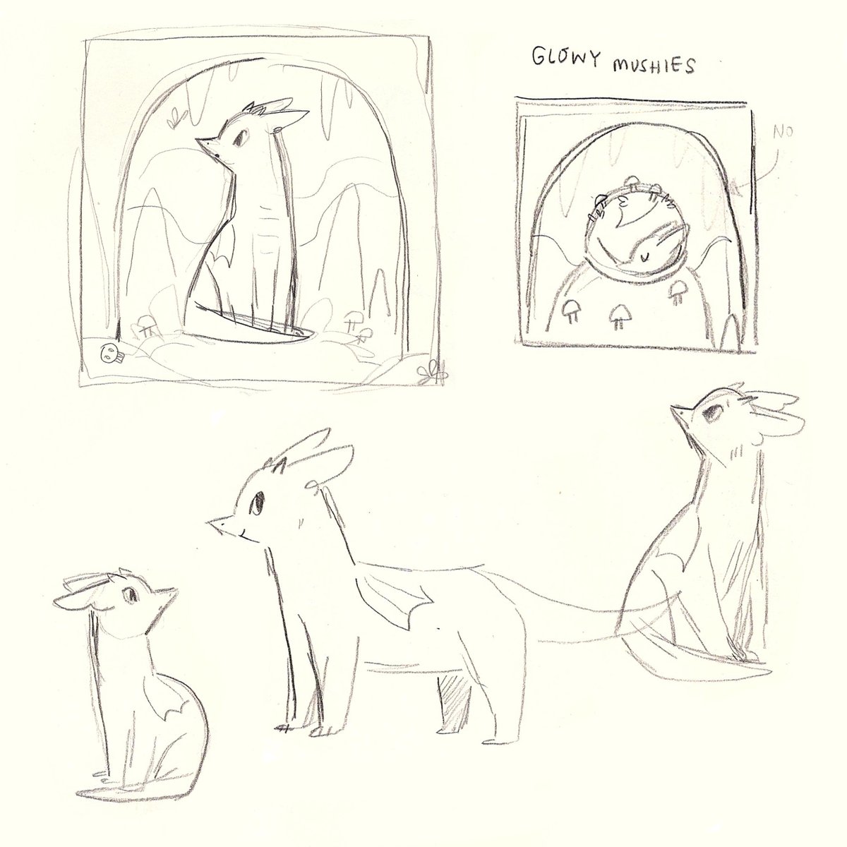 Decided to participate part time in #peachtober22 - here's day 1 (cave) plus some exploratory doodles #art #illustration #sketchbook #kidlit