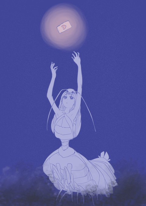 お題「触手」「月」クラゲは海月 #人外版深夜の真剣お絵描き60分一本勝負