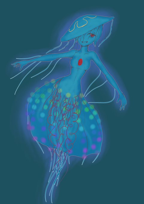 5 20 お題「触手」「月」クラゲは海月 #人外版深夜の真剣お絵描き60分一本勝負 21/11/20 00:04