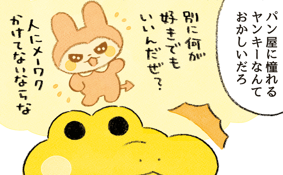 「好きなことは好きでいて(楽しんで)いい」というメッセージは、 コロちゃん→コッペパンわに コッペパンわに→ジャンくん ジャンくん→ミニパンわに の順に受け継がれています。 優しさって伝染しますよね☺️ twitter.com/ruuiruiruirui/…