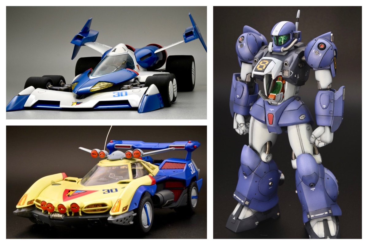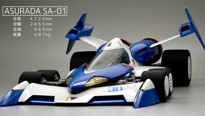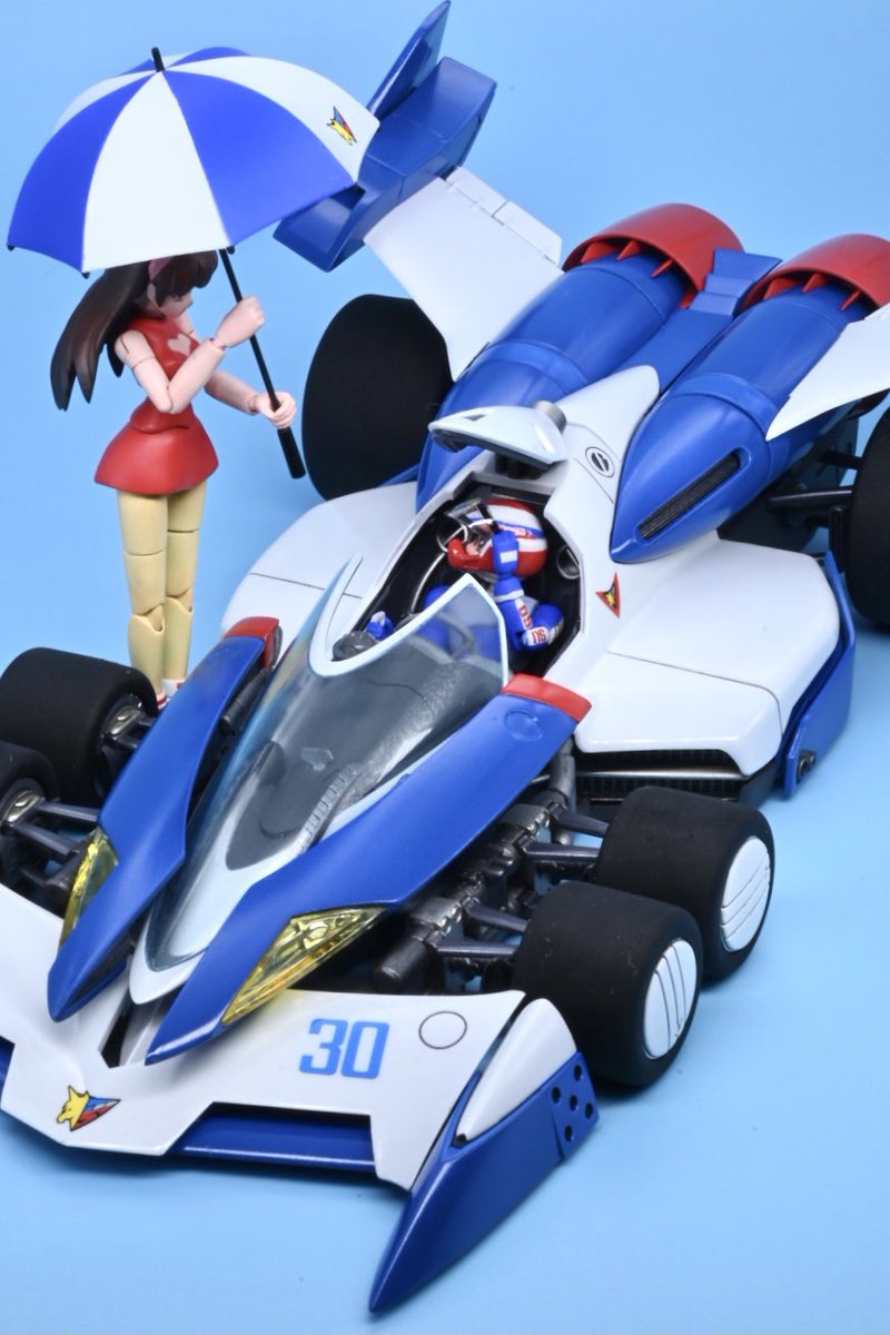 #アオシマ 1/24 スーパーアスラーダ01 アニメ仕様 完成とします。アスラーダはイジる所が無くってほぼストレート組みですが、代わりにハヤトは上半身をフル改修し 首,腰,腕,手が可動するようにしています。また同スケール(?)の菅生あすかも併せて作ってみました。(続く↓) #サイバーフォーミュラ