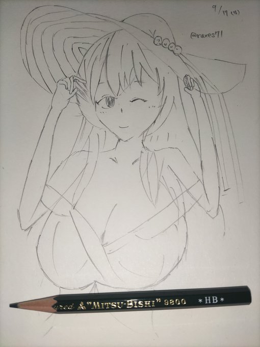#夏が終わりそうだし今年描いた水着絵を貼ろう いつか来るであろう、イラストリアスの水着衣装実装に向けて精進するぞ💪