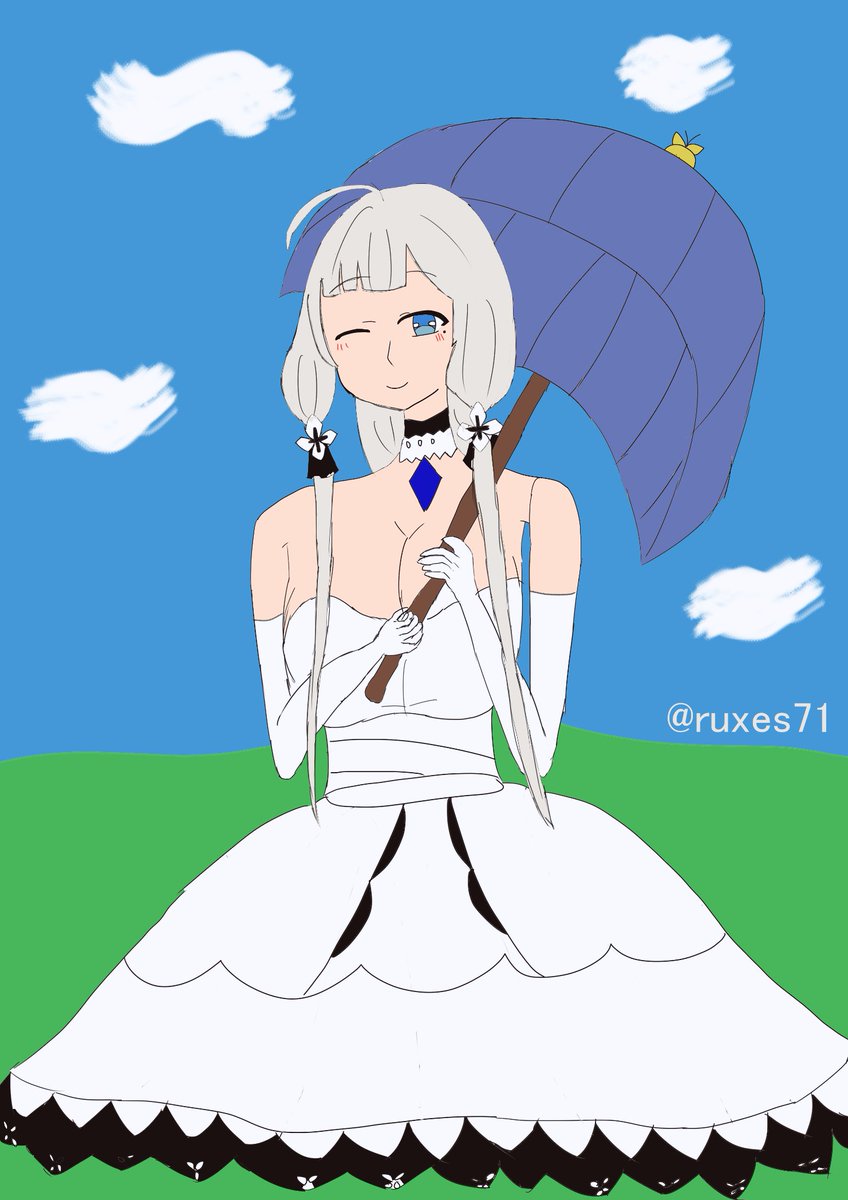 カリブディスさん進水日記念 新しいドレス衣装で描いてみました。 アナログはすっごい久々でなぜか緊張した💧 #アズールレーン