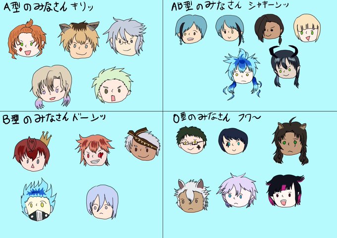 0 1 最初のツイートの時にやった血液型考察。今度はキャラの顔に色を塗ってみた♪初めて描いたキャラがほとんどだけどすごく楽しかった✨ #ツイステファンアート #血液型考察 22/02/27 14:32