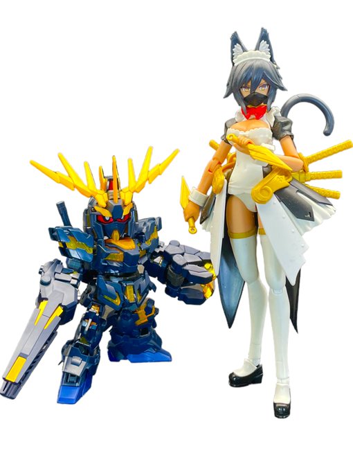 #今月作ったプラモ晒そうぜ 今月はメイドロイド・クオンとSDCSバンシィの2体でした🤗