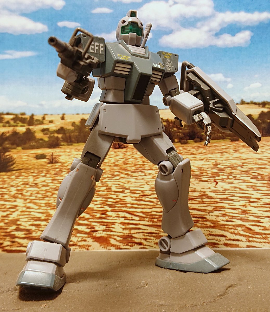 35 81 HGUC改造 ジム・コマンド ライトアーマー 完成です。 HGUCのジム寒冷地仕様と素ジムのミキシングにパテ盛って作りました。旧キットのイラストとガンオンのモデリングを参考にしました。 #ガンプラ 21/07/20 18:41