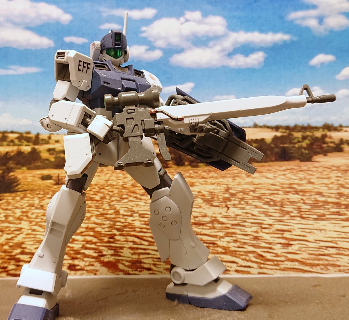 HGUC改造 ジム・コマンド ライトアーマー 完成です。 HGUCのジム寒冷地仕様と素ジムのミキシングにパテ盛って作りました。旧キットのイラストとガンオンのモデリングを参考にしました。 #ガンプラ