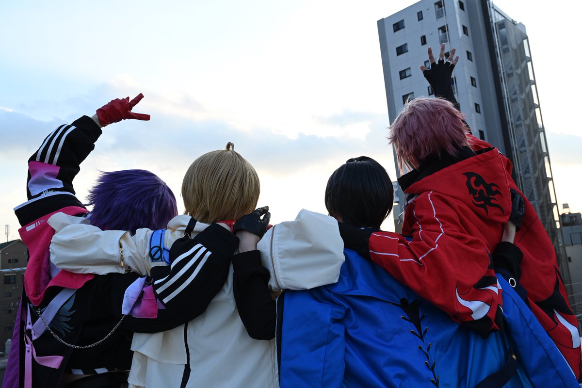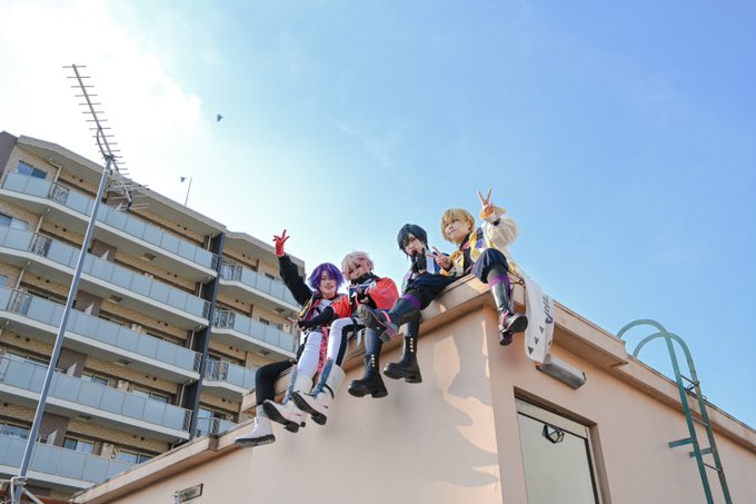 【⚠︎cos/🌈🕒】 . . これからも人々の日常を幸せに!! . . 🍝🍷:唯(#dy__cos ) ♦︎☕️:田中丸(#burimaru_3150 ) 📄:陵未(#ry0nry0mii ) 🦉🎻:mizuha. (#kirisame_0 ) 📸:りあ(#camera_0625 ) . 1周年おめでとうございます🎉