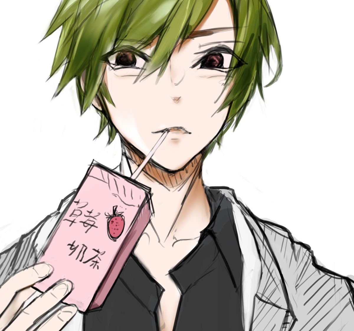 紀念一下第一次喝草莓奶茶 #絵描きさんと繋がりたい #男の子 #少年