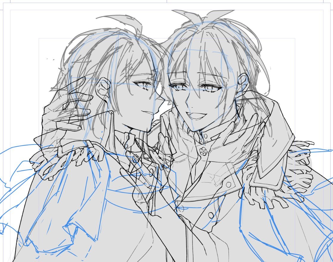 全然参考にならないですが、描いても無駄なところめっちゃ描いて消してる🫠誕生日絵の工程ですが、右上が最高に無駄な作業🫠