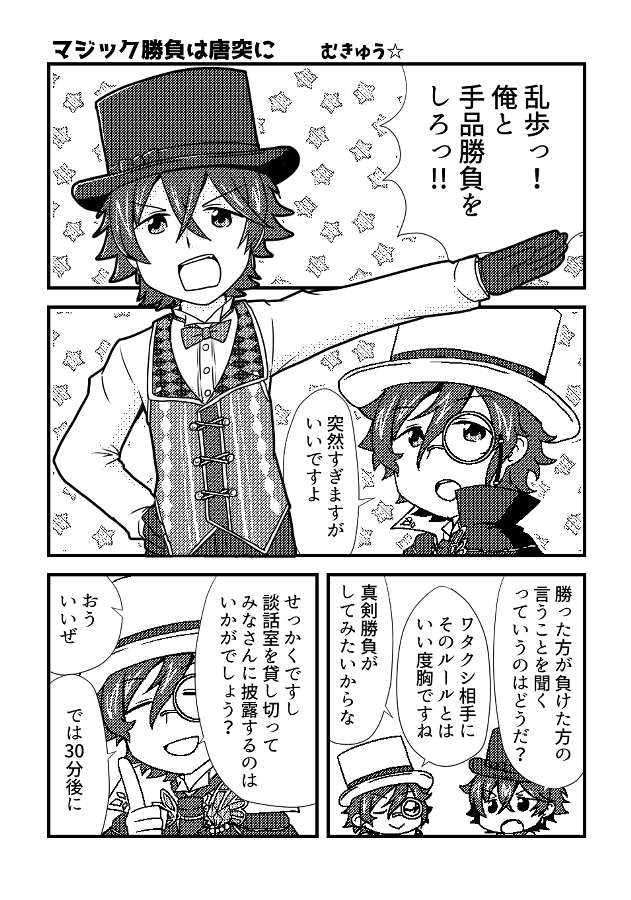 3/25-26の安乱webオンリーで発行の、浅葱さん(@Asagi_hika)との安乱合同誌です。サーカス衣装をテーマにそれぞれ漫画を描きました。私のスペースで扱わせていただきます。よろしくお願いします! #推理談義を口実に3