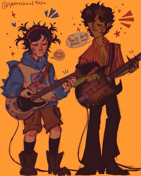 noodle and murdoc getting along n jamming out together!! #gorillaz #gorillazfanart #noodlegorillaz #murdocniccals #murdocgorillaz