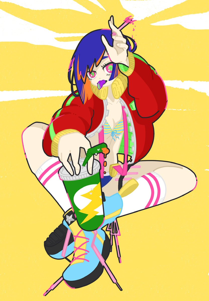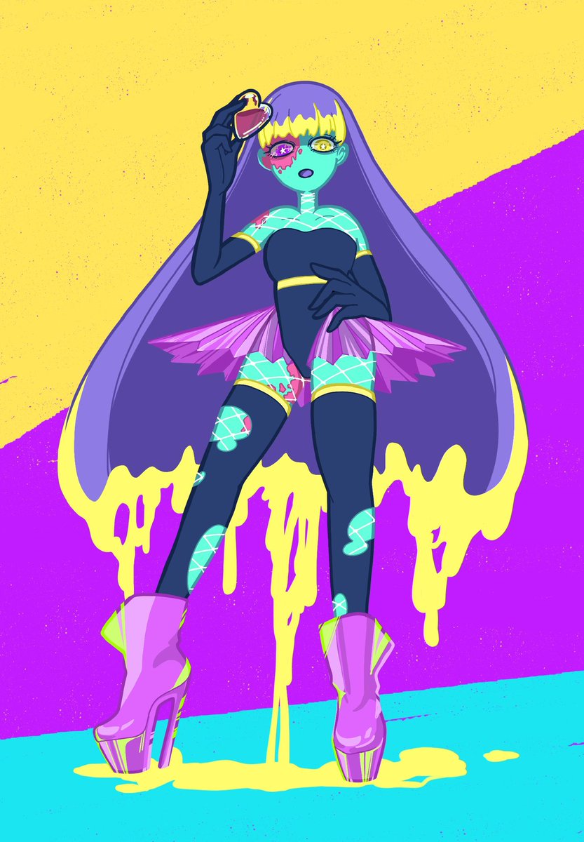 #絵を彩度100にすると超派手 暗めのイラストチョイスしてみた🫰🏽 強強感増した💪🏽