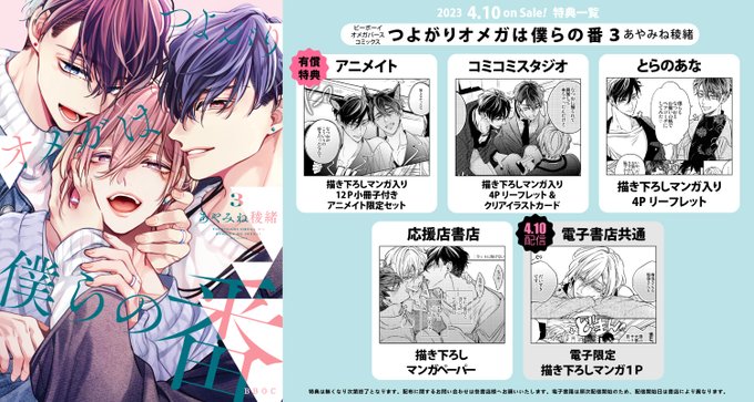 最終週のネップリ登録をしてきました🌸 三人の登録は4/23まで、侑也と一緒にプリント出来る期間は4/16までです!いよいよ明日はコミックス3巻発売日です、どうぞよろしくお願いします~!💙💖❤️ (🇹🇼🇰🇷はツリーをご覧ください) #つよがりオメガは僕らの番 #創作BL