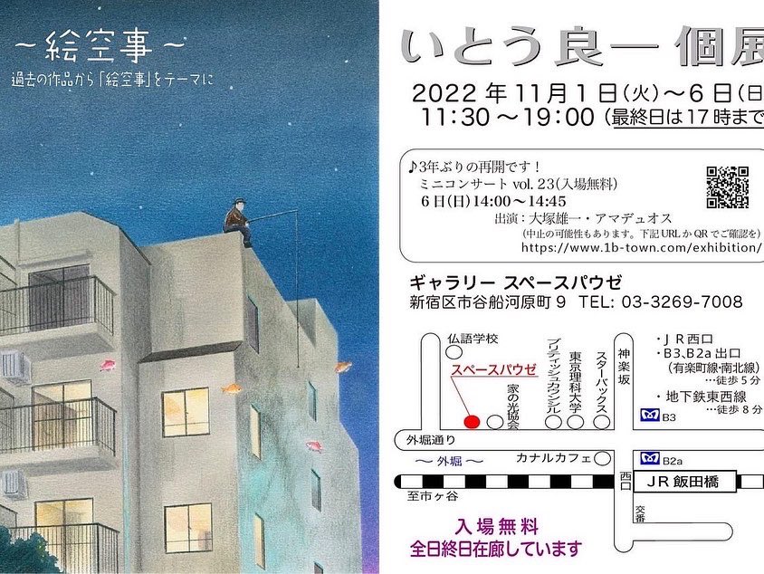個展三日目がオープンしました。 陽気も良くて外堀周辺も気持ち良いですよ。 今回は「絵空事」をテーマに21点を展示します。 11月1日(火)~6日(日) 東京飯田橋駅下車。 全日終日在廊しておりますので、是非お越しくださいませ^^ 1b-town.com/exhibition/ #個展 #exhibition #イラスト
