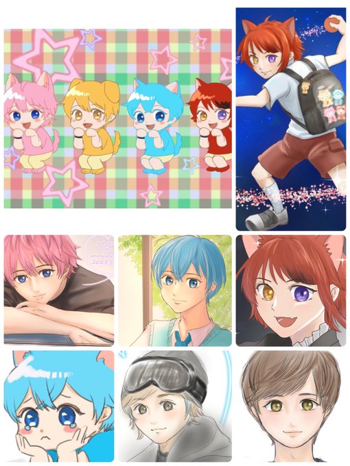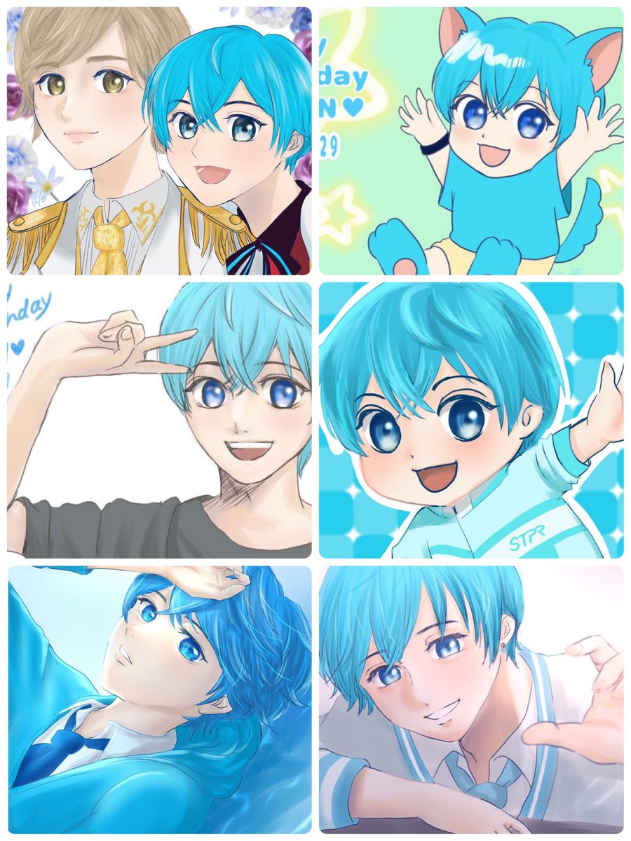 #今月描いた絵を晒そう 連休で時間取れたのと、 生誕祭があったのでいつもより描けました。我ながら気に入った絵もかけたのが良かったな☺️水色祭🩵だったな✨ あ、💛の彼がいない… 描きたいイメージはあるので…👊