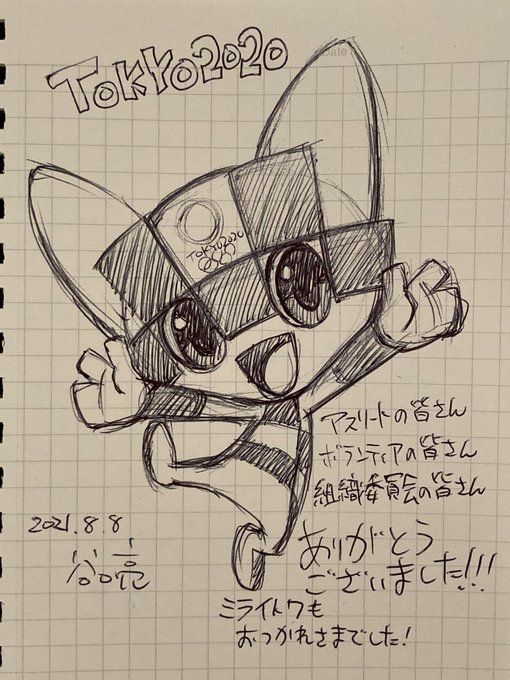 819 3223 オリンピック閉幕しましたね これだけ描きたくて 大会を作り上げるために関わったすべての方達へお疲れ様でした!! 次はパラリンピックだ! そしてパリへ ※怒られたら消します #ミライトワ #tokyo2020 21/08/09 02:04