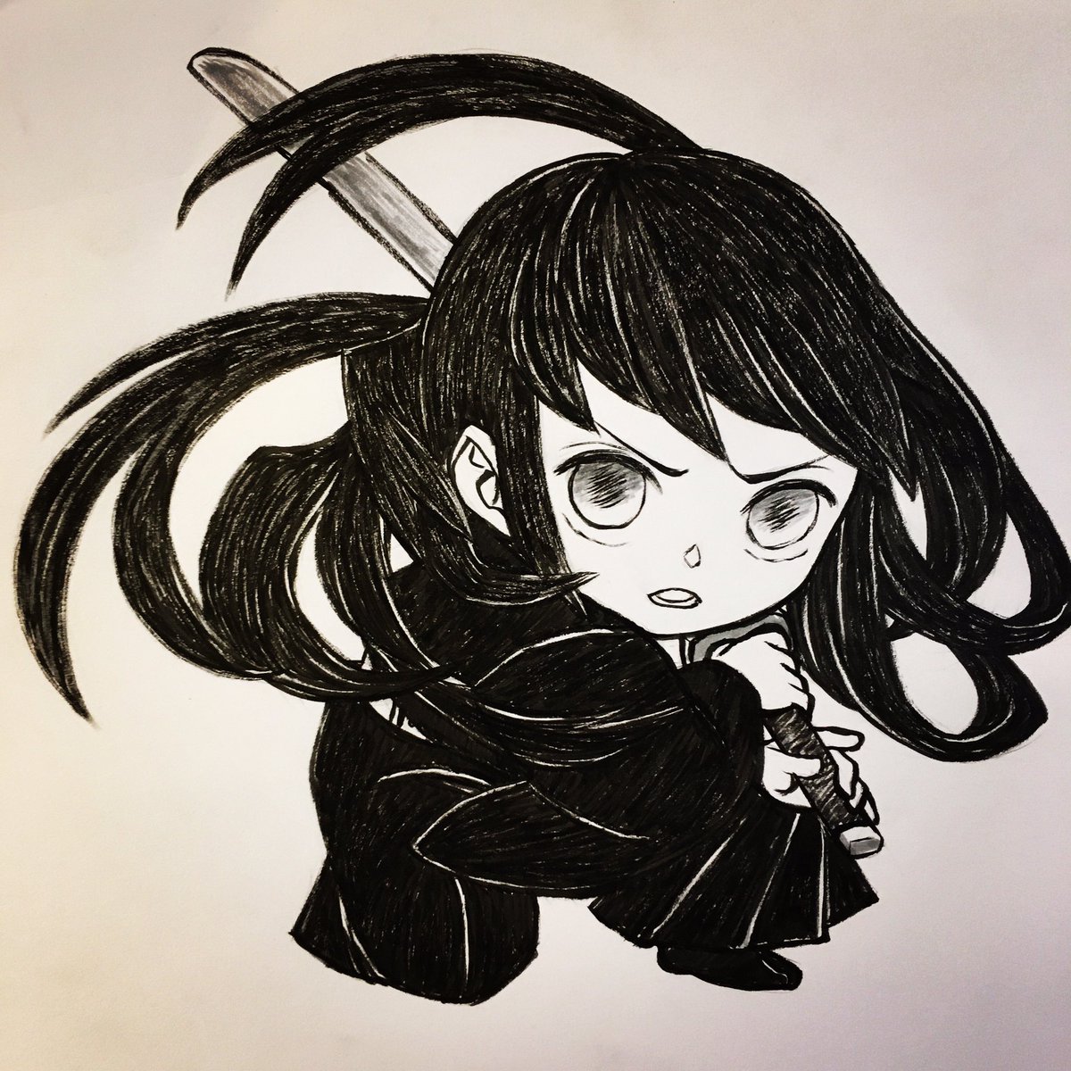 娘に「無一郎君描いて」と頼まれたのでディフォルメにしてみた #鬼滅の刃 #時透無一郎 #無一郎 #ディフォルメ #筆ペン